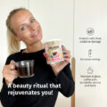Con i principi attivi di collagene, acido ialuronico, bioazione e vitamina C, questa deliziosa miscela di caffè aiuta a rafforzare l’elasticità della pelle, diminuendo l’aspetto delle rughe. La caffeina del caffè e del guaranà aumenterà l’energia e la concentrazione.