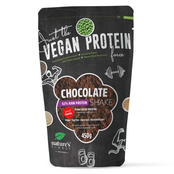 Proteine ​​di origine vegetale complete, gustose e facilmente digeribili in una bevanda al gusto di cioccolato.