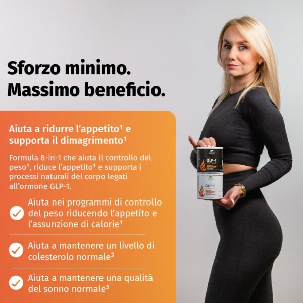 Formula 8-in-1 che aiuta il controllo del peso¹, riduce l’appetito¹ e supporta i processi naturali del corpo legati all’ormone GLP-1.