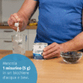 Dosaggio giornaliero raccomandato 1 misurino (5 g). Mescolare in un bicchiere (150 ml) d’acqua e bere. Per un dosaggio preciso si consiglia di pesare.