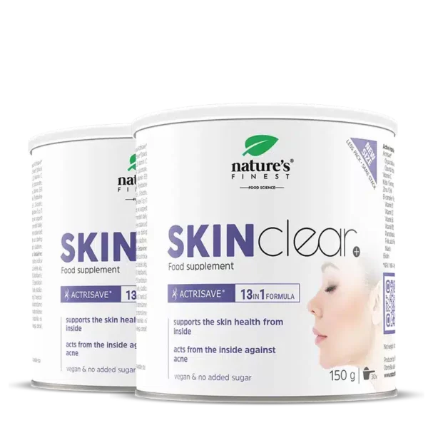 SKINclear+ unisce ingredienti efficaci che agiscono dall’interno contro l’acne¹, supportano la salute della pelle dall’interno¹ e contribuiscono a regolare l’attività ormonale³.