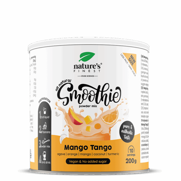 Frullare 1 tazza di ananas a pezzi, 1 arancia sbucciata e 1 tazza d’acqua con 2 cucchiai di mix per frullati. Filtrare e servire con ghiaccio per un succo tropicale rinfrescante.